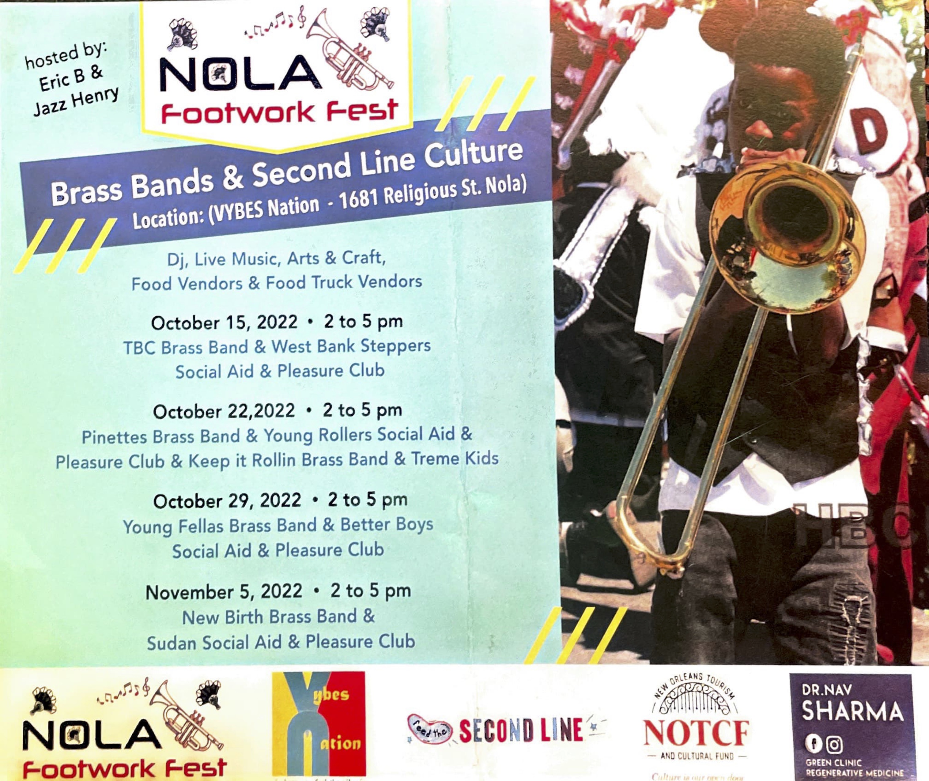 DJ, live music, arts & crafts, food vendors, food truck vendors will be on site as TBC Brass Band and West Bank Steppers do their thing!